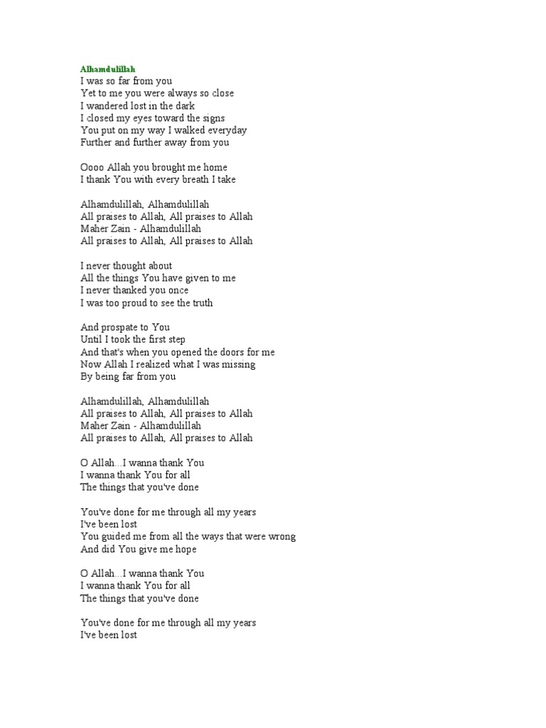 Maher Zain Thank You Allah Vocals Only Lyrics Maher Zain Maher Zain Songs Thank You Allah Cuitan Dokter
